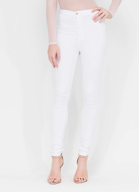 Not to mention the nude heels and long gold chain to accent her white high waisted pants and white cami.